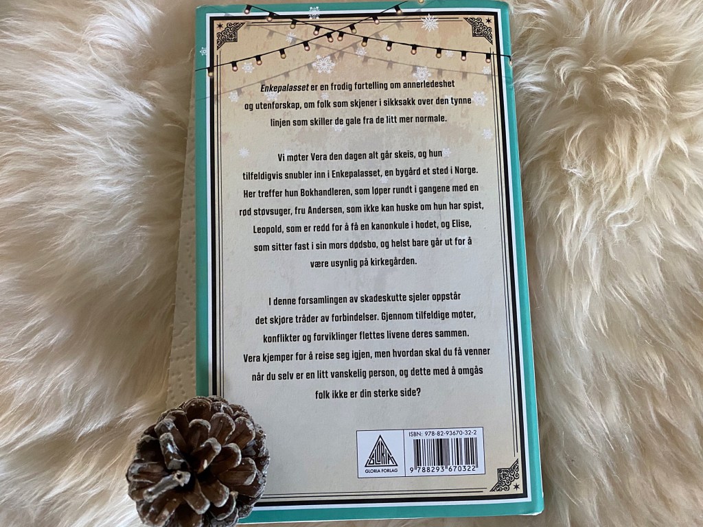 Leseren kommer rett inn i handlingen den dagen alt går på tverke for Vera. Ved en tilfeldighet finner hun veien til Enkepalasset, og i denne bygården et sted i Norge finner hun noe hun ikke har vært nødt til eller ønsket å forholde seg til på veldig lenge, samhørighet og vennskap!