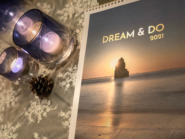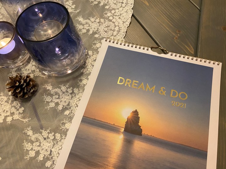 DREAM & DO: En enkel lekker kalender med gullskrift og flotte bilder og sitater for hver måned.