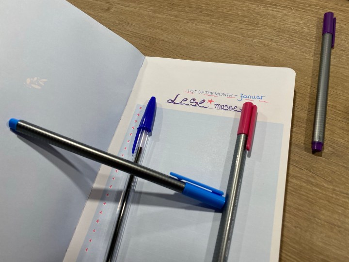 Mine tanker: Jeg likte ikke rutenettet til den rosa noe særlig men, det er fordi jeg liker litt bredere felt å skrive på. Samtidig ble den veldig intens rosa for min del men helt klart en bok jeg kunne notert i på hytta eller liknende. Multi skog derimot minte meg veldig om en avtalebok – men med et nydelig omslag. Den har også et bredt linjert felt som jeg setter stor pris på. Hvis du lurer, begge tålte pennene mine godt.