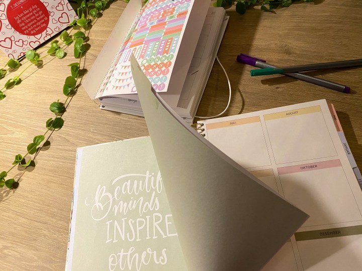 Mine tanker: To ganske ulike, men kreative varianter. Doodle ga meg lyst til å være kreativ med farger og klistremerker for å gjøre dens dager enda mer spennende, mens Life Organizer Palmer ga meg oversikt uten sidestykke, koselige sitater og adskilte måneder. Jeg satte i gang ved kjøkkenbordet en stille kveld, syns ikke du det er koselig å pusle litt med dagboken din om kveldene? Jeg kunne sittet veldig lenge med disse to (noe som syns på enkelte bilders lys at jeg gjorde også..) Begge to besto min test med penner, og disse takler nok sterkere penner også.