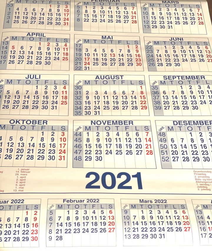 PLAKATKALENDER: Denne er en favoritt i mange bedrifter, og jeg er mer eller mindre oppvokst med den rundt meg, makan til oversikt skal du lete lenge etter. Den måler 59X80cm, og viste seg å bli en bitteliten utfordring å ta bilde av til deg men, jeg håper du som ikke har sett den tidligere får et godt inntrykk av den.