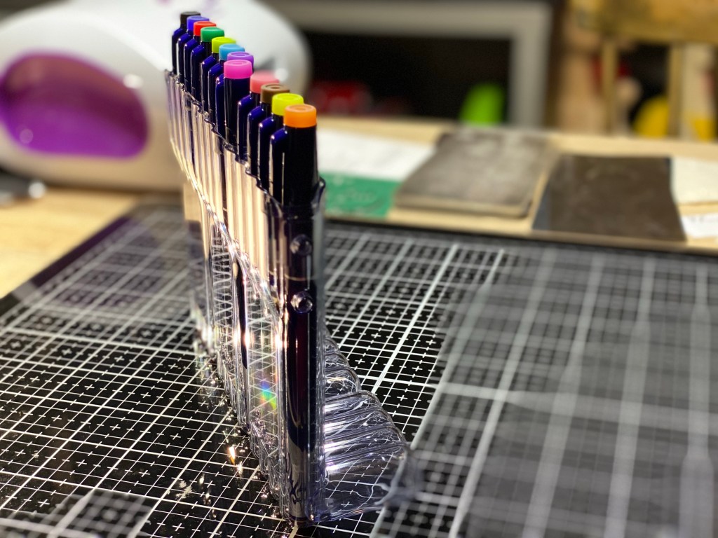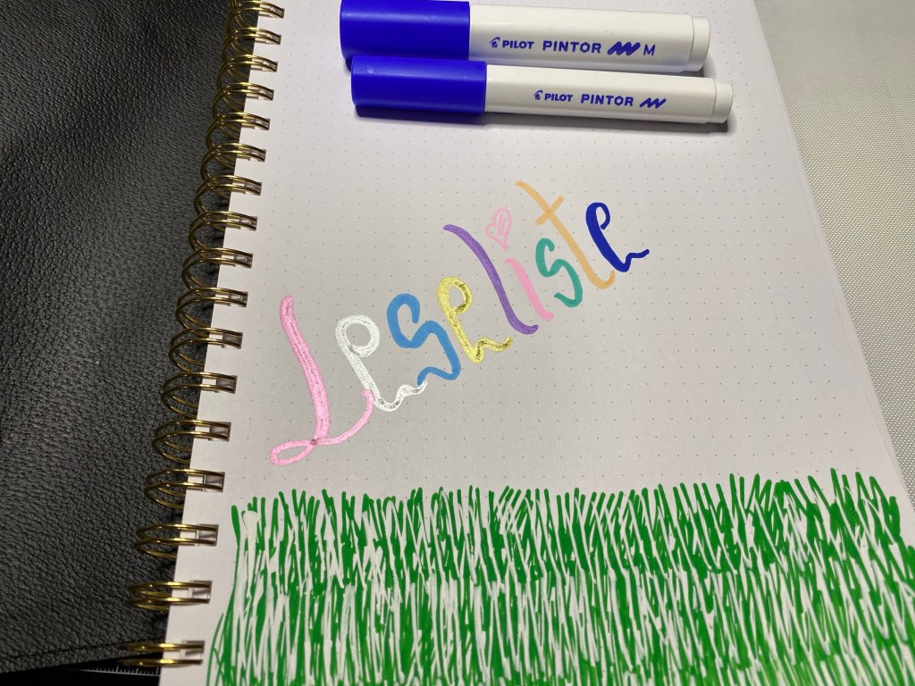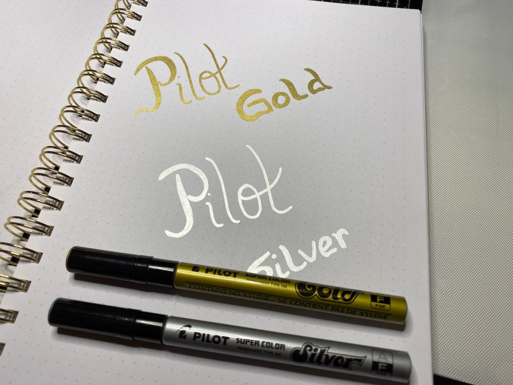 Av tusj pennene likte jeg begge de to variantene jeg fikk teste men, aller best likte jeg super Color gull og sølv. Akkurat passe tykk fiber tip til å både skrive og skrible med. Den myke følelsen den ga mens jeg skrev overrasket meg veldig positivt, de liknende jeg har testet tidligere har fort blitt litt rufsete i fiber tip’en og laget ujevne streker ganske tidlig – ikke disse.