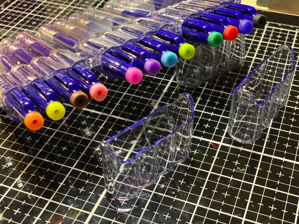 Disse pennene kommer i et godt fargeutvalg, både løse og i praktiske esker som kan settes opp, legges ned eller skrått slik at man finner fargene man vil skrive med veldig veldig enkelt. Se bildene under for noen eksempler. Disse har fiber tip, og FriXion delen på toppen av hetten er farget i den ulike penns farge.