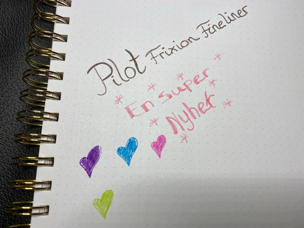 Min favoritt blant pennene er uten tvil deres FriXion fineliner. Både på grunn av eskene som kan stilles opp på forskjellige måter etter ønske men, jeg liker nok penner med fiber tip bedre enn ball. Jeg syns disse kommer i fine og klare farger, og de er utrolig gode å skrive og skrible med – det er nesten så jeg ikke vil stoppe når jeg skriver og skribler med de.