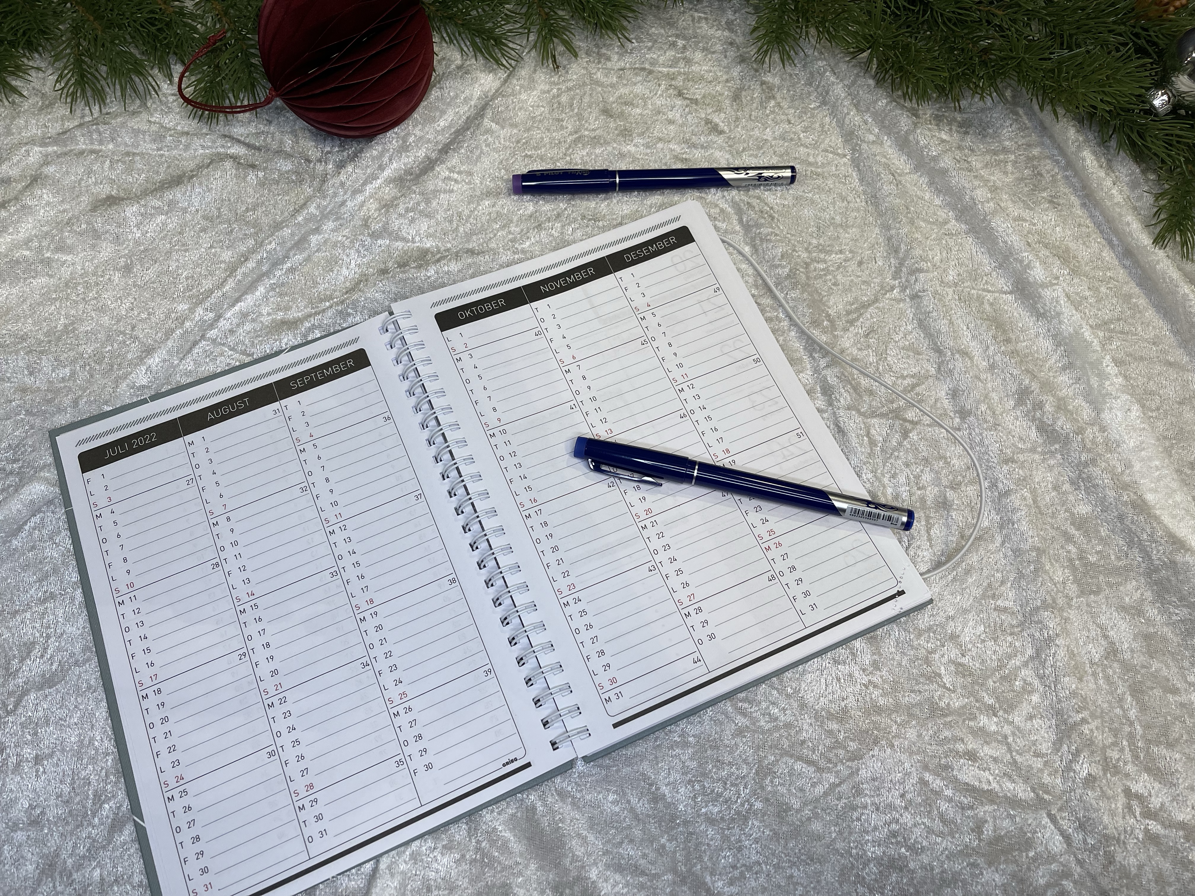 Begge variantene er jo bare helt nydelige å se på, men også å holde i. Semsket imitert skinn på disse gjorde dem gode å ha i hendene, og både den grønne og beige skriker etter å bli pakket inn å lagt under et eller flere juletrær. Bortsett fra det nye fine designet så er innholdet slik vi har kjent dem i flere år, men det enkle funker – og disse er fortsatt et veldig godt valg. Gode å skrive i, så er det fint at det er fargede «faner» på Libra, alltid likt det.
