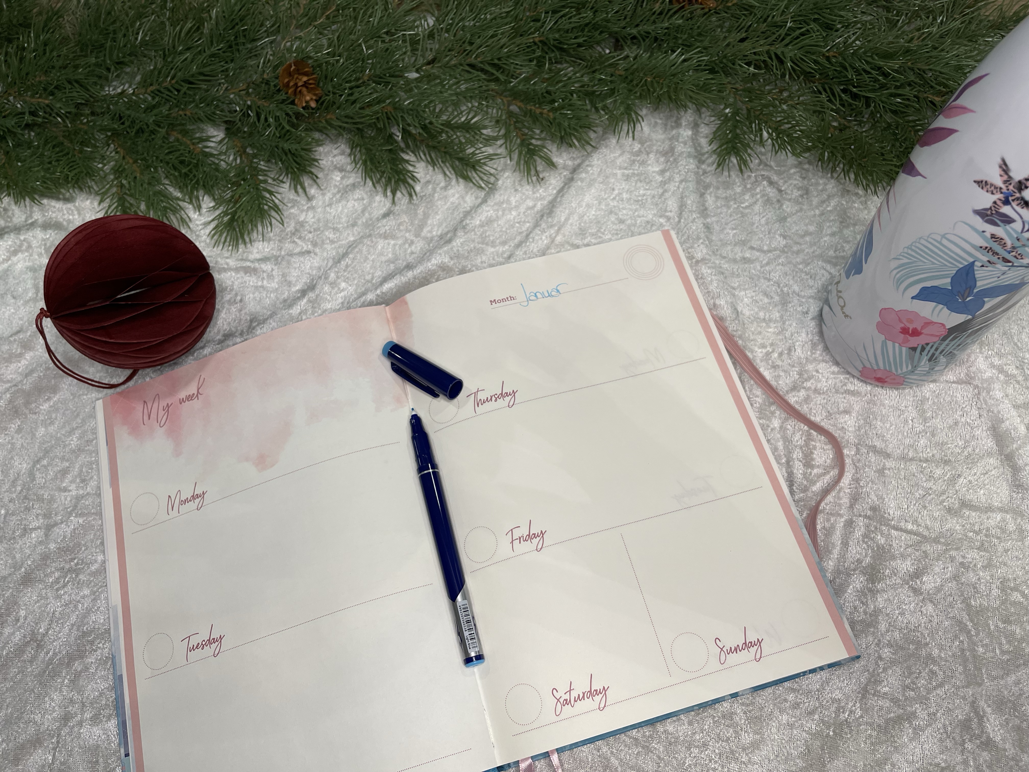 Week planner er enkel og fin. Den har glatt og «mykt» papir å skrive på, og er rett å slett behagelig å se på. Et godt valg for den som liker å fargelegge selv, eller ønsker en «ren» og delikat kalender.