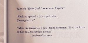 Forfatteren skal ha stor kred for å tenke «utenfor boksen» og som nevnt tror jeg at en lett blanding av humor er en del av romanen. Underveis kjenner jeg likevel på at det kanskje blir litt internt, med elementer jeg undres om at kun forfatteren virkelig skjønner helheten av. Jeg velger å tro at det er meg, for at det er en innholdsrik, morsom og til tider dyp roman, som jeg tror mange vil ha stor glede av å lese er helt sikkert!