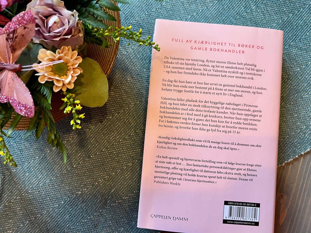 Handlingen ga for meg et pluss siden bøker er en viktig del av tematikken. Jeg så for meg bokhandelen og kjente på stemningen fra filmen «Du har mail» selv om handlingen der foregår i USA så var det ikke vanskelig å se for seg en liknende eldre bokhandel fullstappet med sjel i flotte Primrose Hill i London (ja, jeg måtte Google for å se litt..) Romanen er tidvis ganske morsom og søt – men også hakket forutsigbar med, for meg et litt for lavt tempo som gjorde at den dessverre var litt for lett å legge fra seg innimellom.